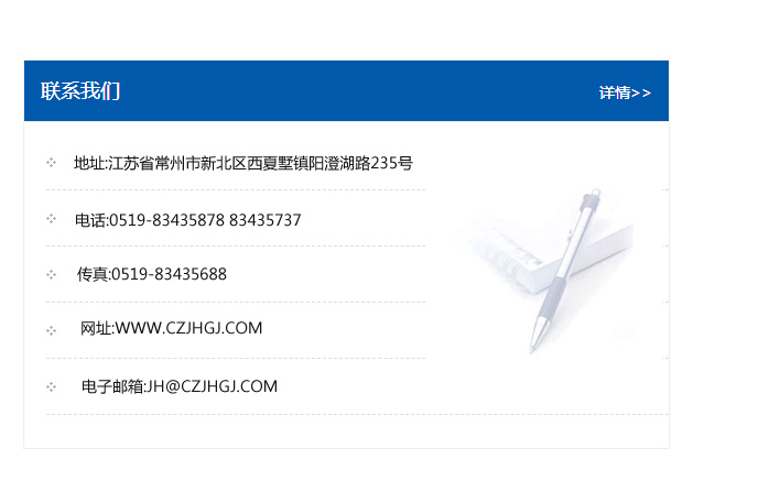 傳真:0519-83435688    郵編:213135    網址:WWW.czjhgj_com.yqymjy.com    電子郵箱:JH@czjhgj_com.yqymjy.com